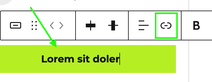 We zorgen er eerst voor dat we in onze knop klikken, een voordeel van de knoppen is dat we nu niet de gehele tekst moeten selecteren. Dan zien we terug een link-icoontje staan.